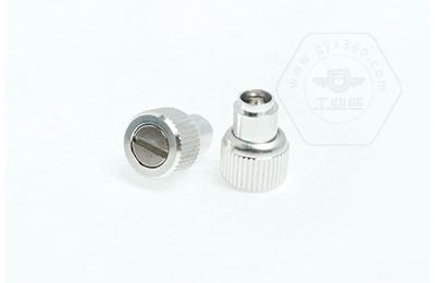 手緊螺釘?shù)膲恒T套具有壓花齒,壓裝于于機箱或薄鈑孔內(nèi)(注:薄板的鉆孔徑相對應彈簧螺釘?shù)膲糊X徑有一定要求的,形成一個外露的彈簧螺釘,用手擰另一端(即手擰端).因其里面固定有彈簧,螺釘相對于薄板的另一端來回進出。