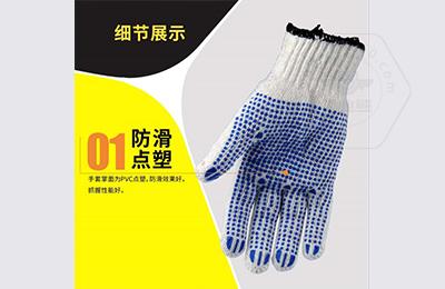 • 產(chǎn)品描述:棉滌混紡針織手套,百分之65滌百分之35棉,7針加厚涉及,掌面PVC點(diǎn)塑涉及加強(qiáng),緊握耐磨損,防滑抗撕裂。適用于普通勞動防護(hù)使用。