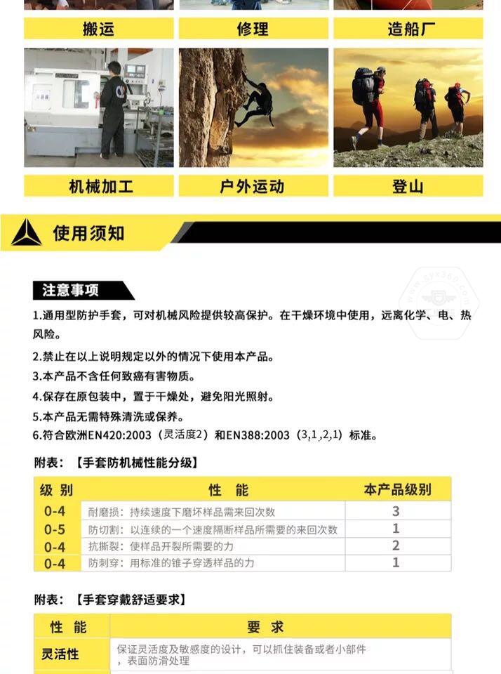 • 產(chǎn)品描述:高空戶外手套,超細聚酰胺纖維材質(zhì),掌面掌背重.點卑微加強型PVC耐磨防護,腕部魔術(shù)貼可調(diào)節(jié)袖口,網(wǎng)狀透氣吸汗處理,亮黃醒目警示色,佩戴舒.適安.全。 適合于高空攀爬作業(yè)以及繩索作業(yè)。