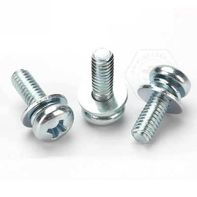 工業(yè)熊碳鋼4.8級(jí)環(huán)保藍(lán)白鋅封閉(24/72h)十字槽盤頭帶平彈墊組合螺釘GB9074.4N